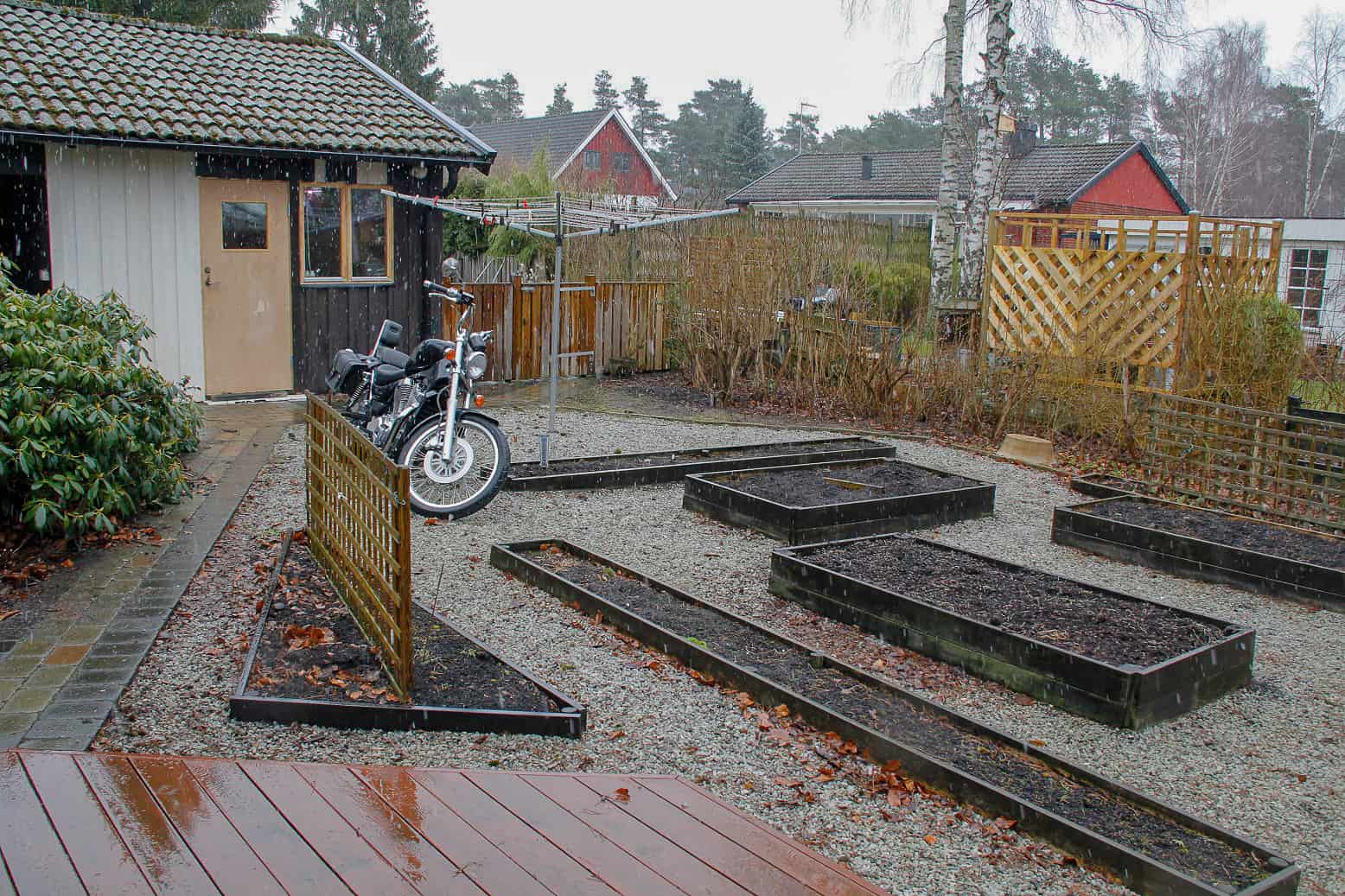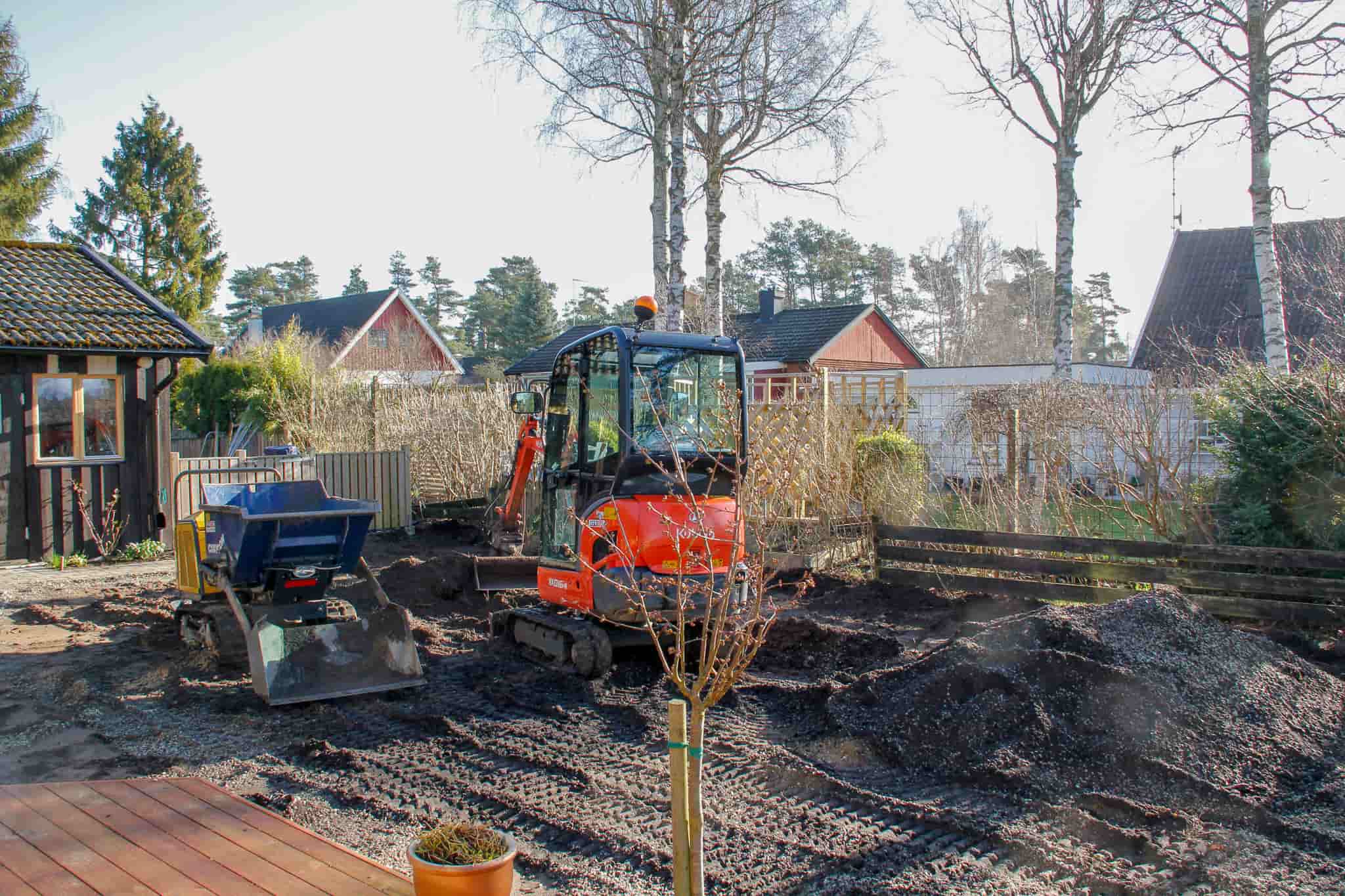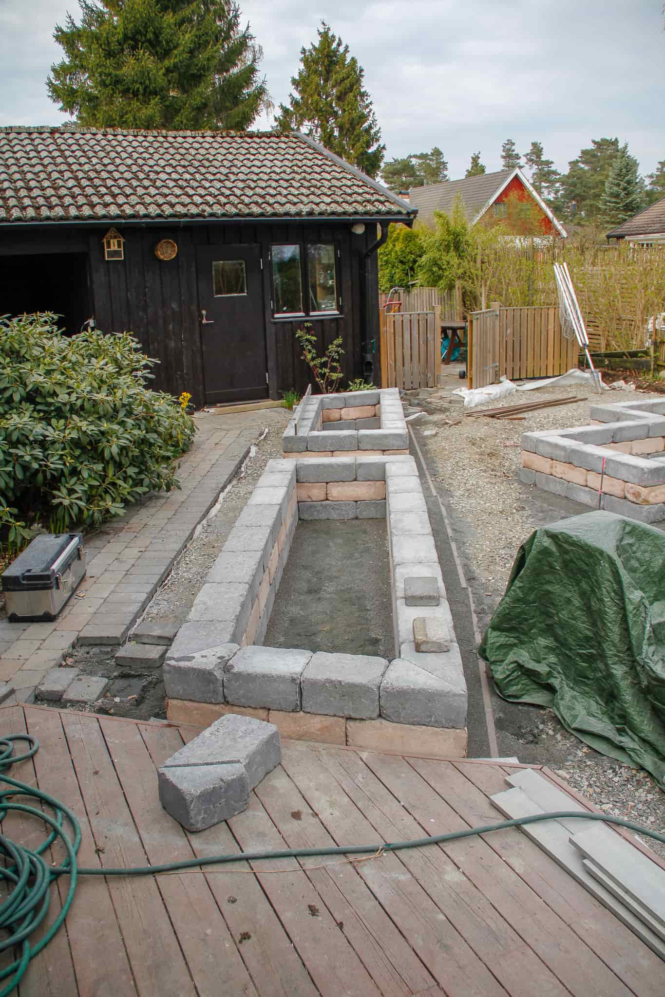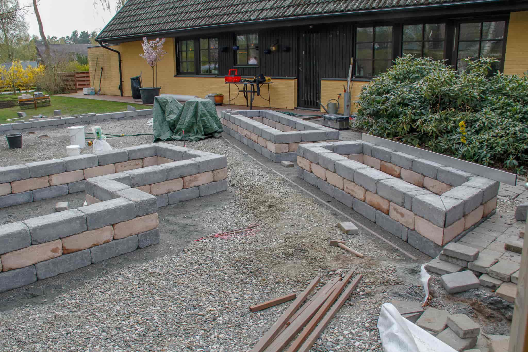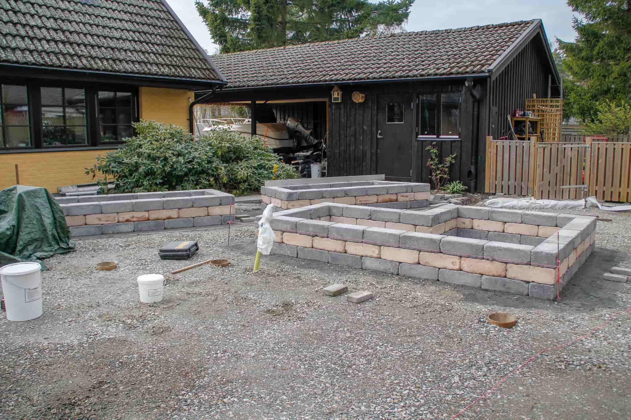 Nya murlådor i Starka byamur, antracit och terracotta. Marksten; Starka byasten, mix mellan terracotta, grå och antracit.